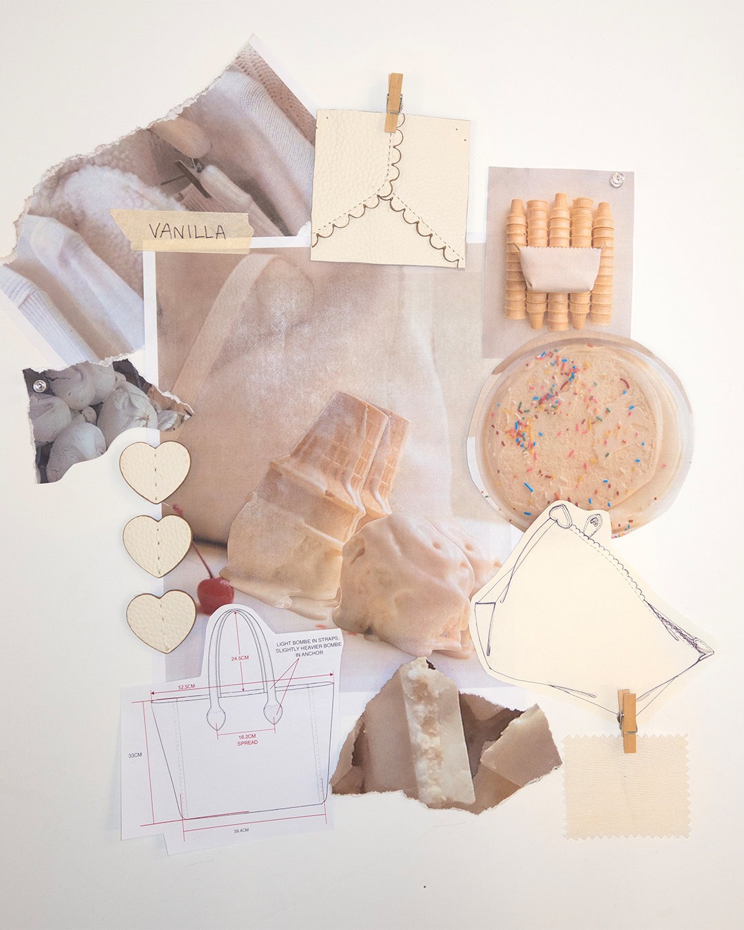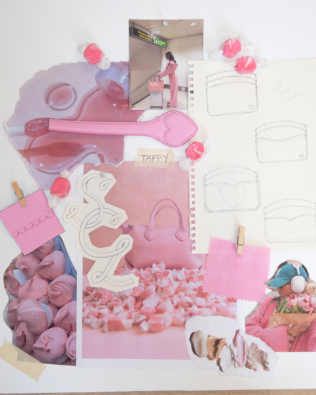 This collection launched a brand new category at Stoney Clover Lane—leather. The bags were designed to feel like an extension of the brand, featuring playful and charming details while feeling luxe and more elevated than our typical nylon styles. For marketing across all digital platforms, we created physical mood boards to show the process behind the collection and the new shades, using iterations of sketches, tech packs, linesheets, and pieces of samples.