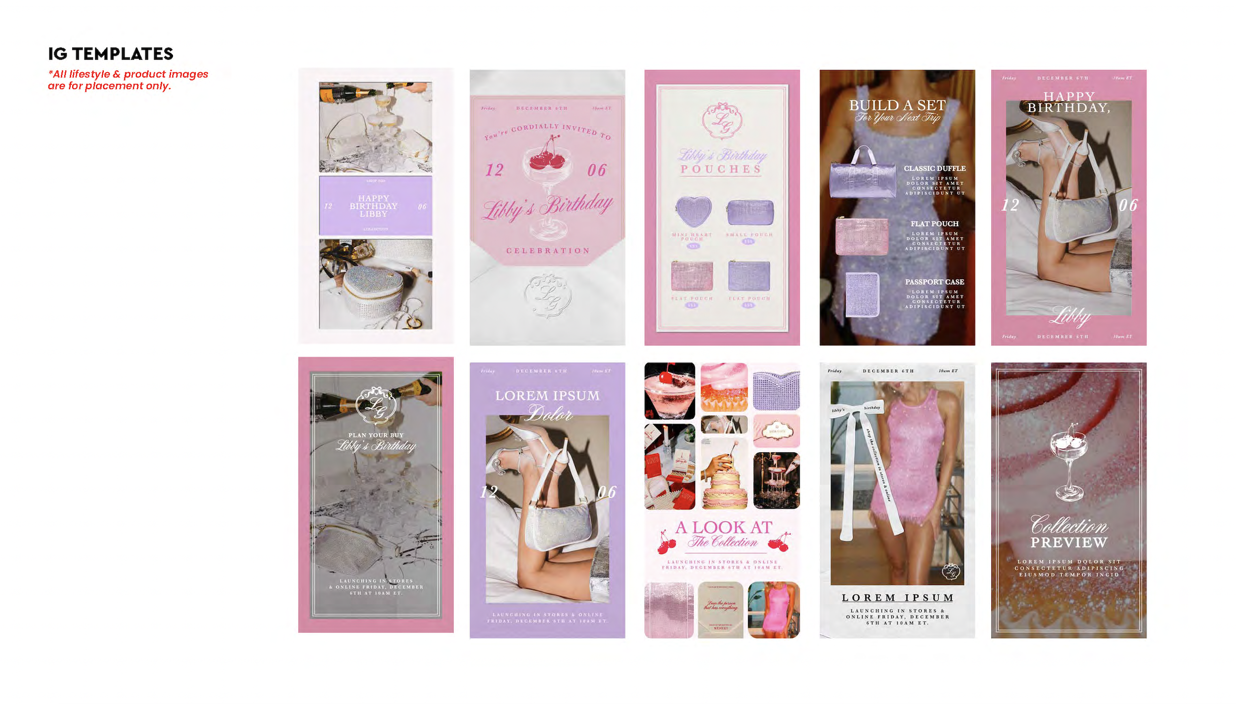 “Libby’s Birthday” expanded on the Sparkle collection at Stoney Clover Lane by introducing 2 new celebratory shades, pink and purple. I developed the brand identity for this collection including original icons, fonts, and color palettes. I ensured consistency throughout all brand touch points, including all digital assets and photoshoot props.